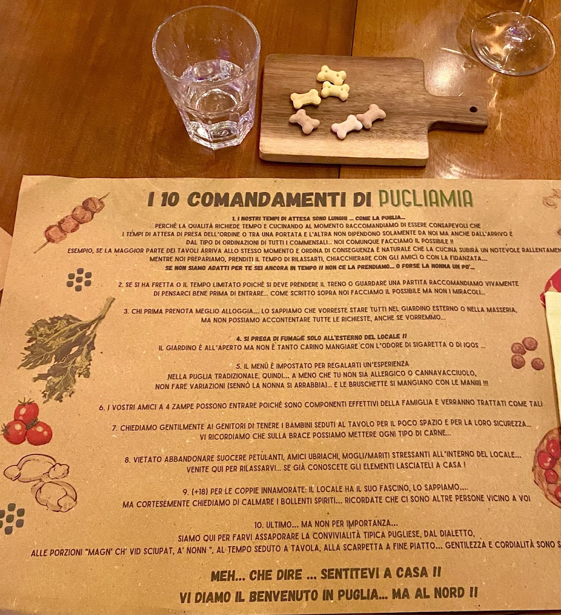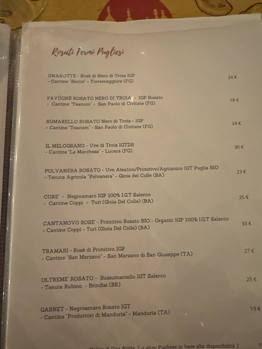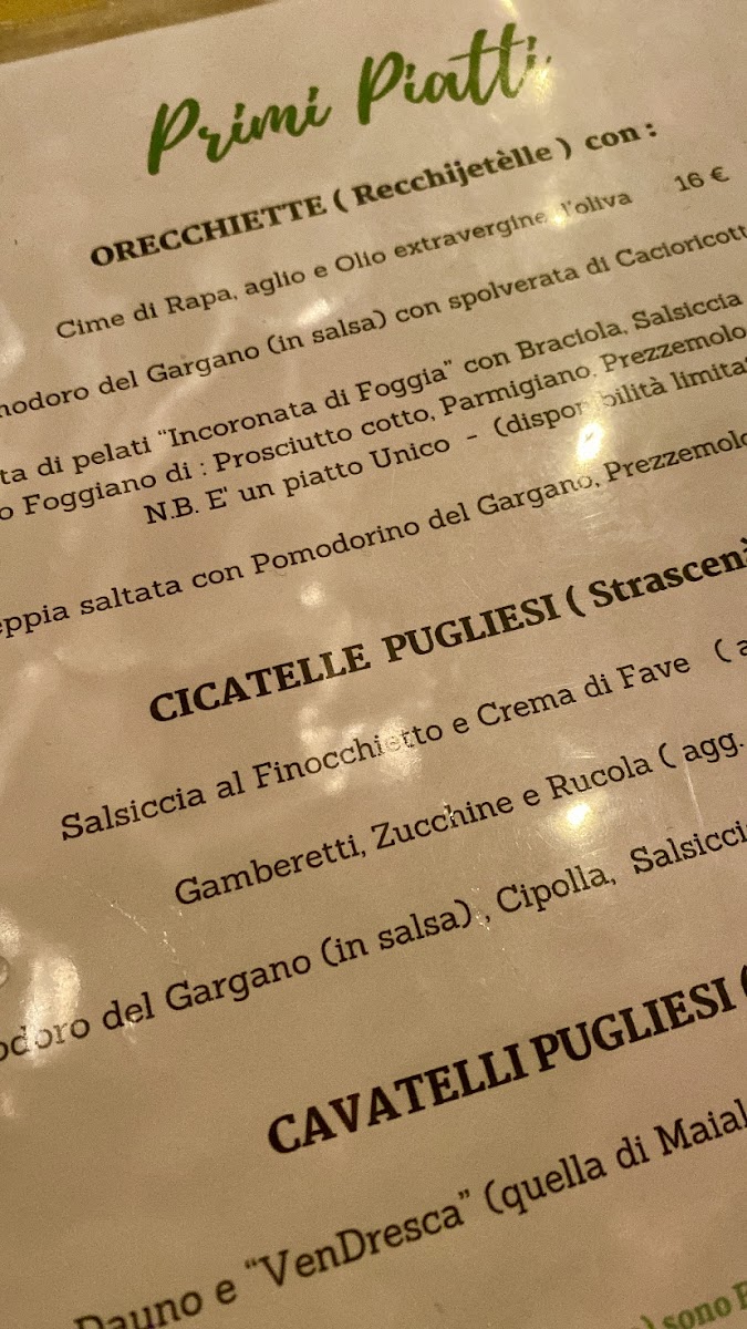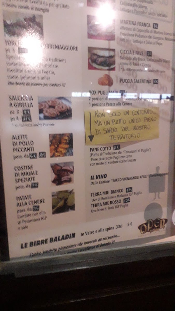 Menus are designed to accommodate casual dining experiences focused on traditional Puglian recipes, with items priced individually or in combination boxes. The range of grilled meats and regional specialties allows for flexible ordering based on appetite and preference.